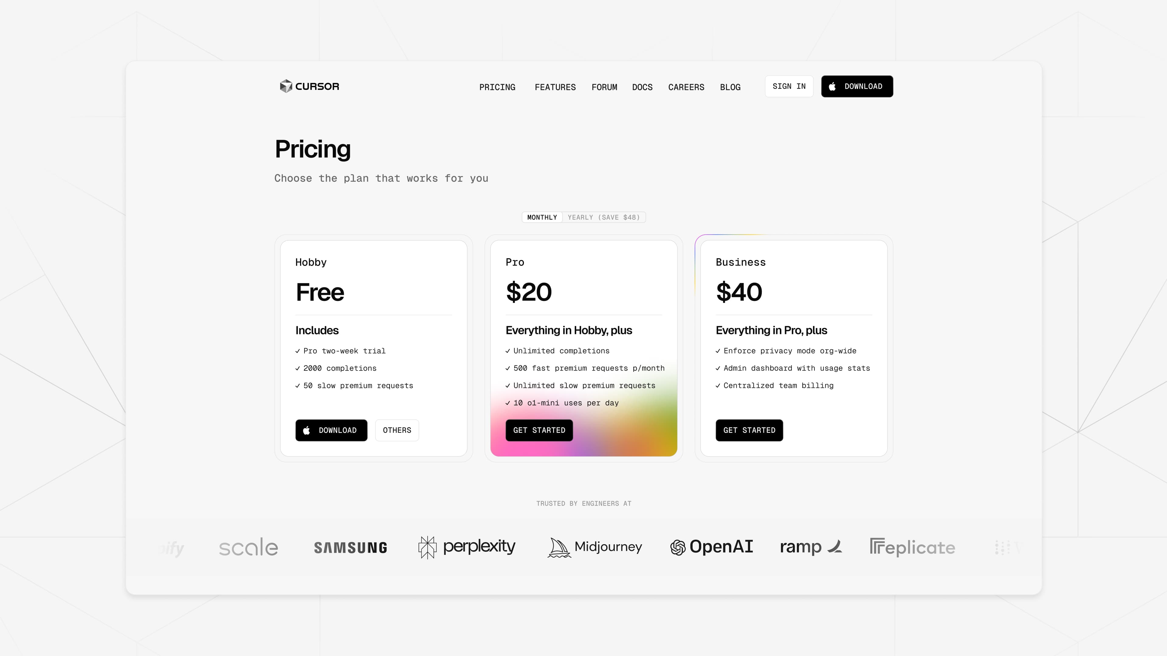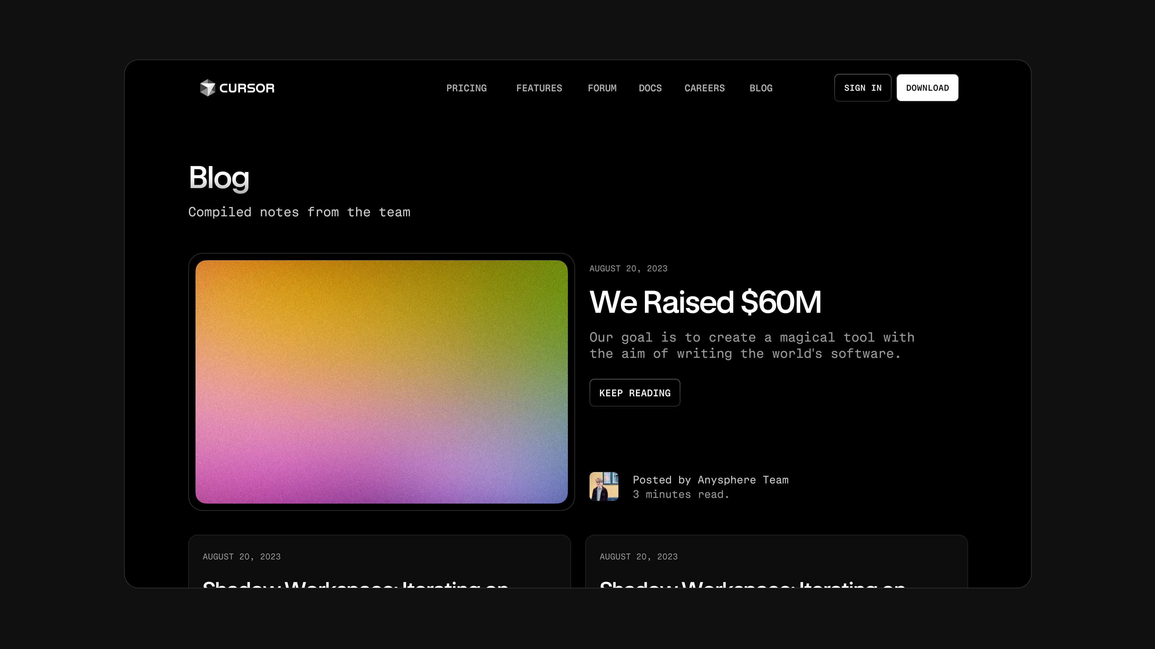 As they scale, their digital presence needs to keep pace. We partnered with Cursor to craft a website that not only reflects their position at the forefront of AI-driven development but is also designed to support the next wave of innovation in software engineering.